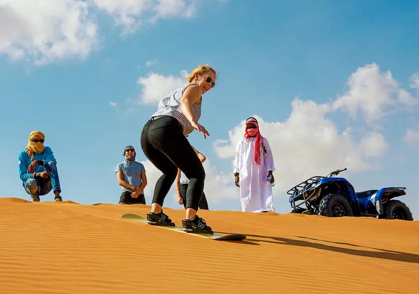 Self drive buggy ride, Sandboarding, Water, Safety gears and tour guide.